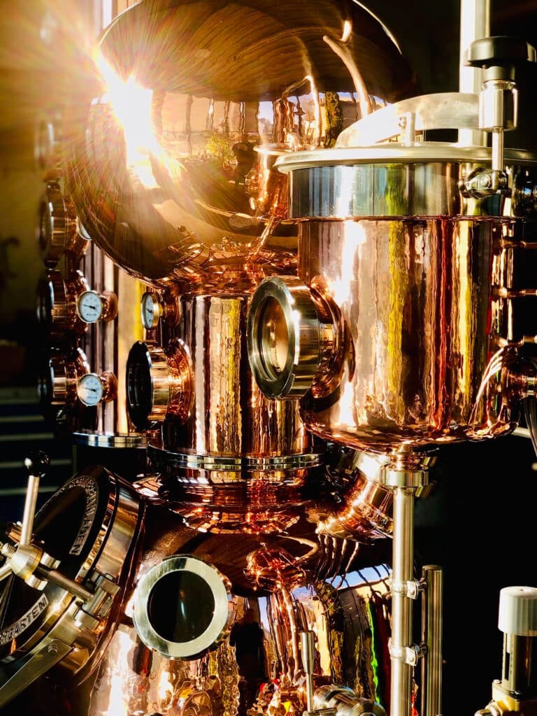 Getrieben von Euphorie und unbändigem Tatendrang ließ Kilian seinen alten Job hinter sich und stürzte sich mit voller Hingabe in die Kunst der Destillation. Zahllose Experimente und viele Stunden harter Arbeit folgten – bis aus der kleinen 2-Liter-Destille eine 100-Liter-Destille wurde. Der Durchbruch ließ nicht lange auf sich warten: 2021 holte ihr Gin Gold beim renommierten Frankfurt International Trophy Award.